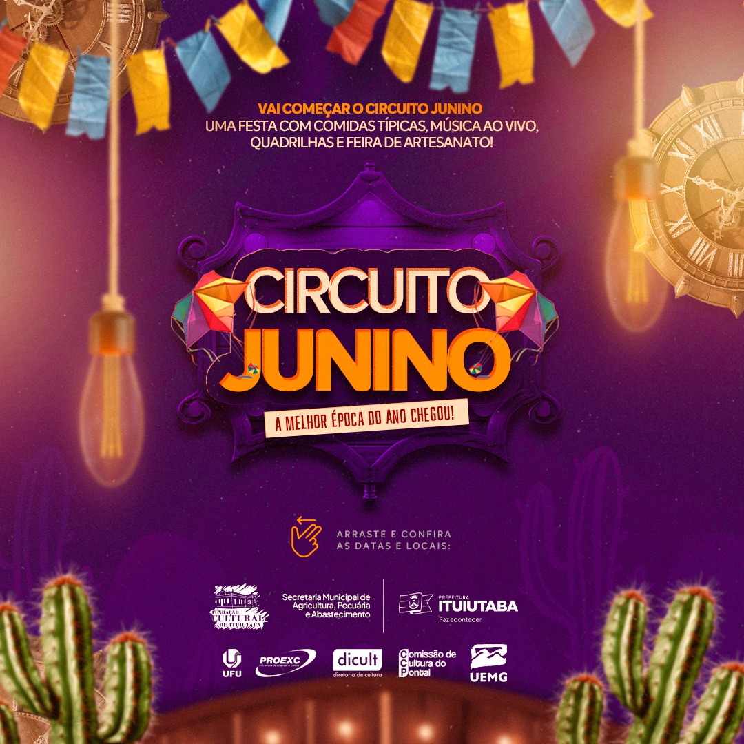 O Projeto Circuito Junino é uma realização da Prefeitura de Ituiutaba, com o objetivo de fortalecer as manifestações culturais locais e oferecer entretenimento gratuito e de qualidade para toda a população.