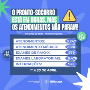 A Secretaria de Saúde da Prefeitura de Ituiutaba divulgou o balanço dos atendimentos realizados na Unidade de Pronto Atendimento Municipal de Ituiutaba (UPAMI), o Pronto-Socorro, durante o mês de abril de 2025.