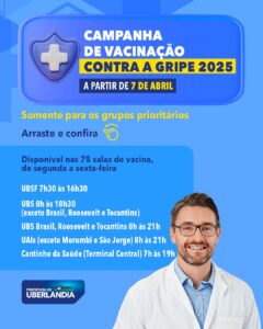 #Saúde | A partir da próxima segunda-feira, a Prefeitura dá início à imunização contra a gripe. A iniciativa acontece em todas as 75 salas de vacina do município, incluindo a do Terminal Central, e é voltada somente para os grupos prioritários. Arrasta pro lado e confira se você faz parte de algum destes grupos!