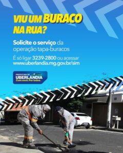 #Infraestrutura | A Prefeitura de Uberlândia está pronta para atender você. Ao identificar buracos nas vias, solicite o serviço de tapa-buracos e contribua para uma cidade mais segura e bem cuidada para todos. É rápido e fácil: basta entrar em contato pelo telefone 3239-2800 ou acessar o site oficial.