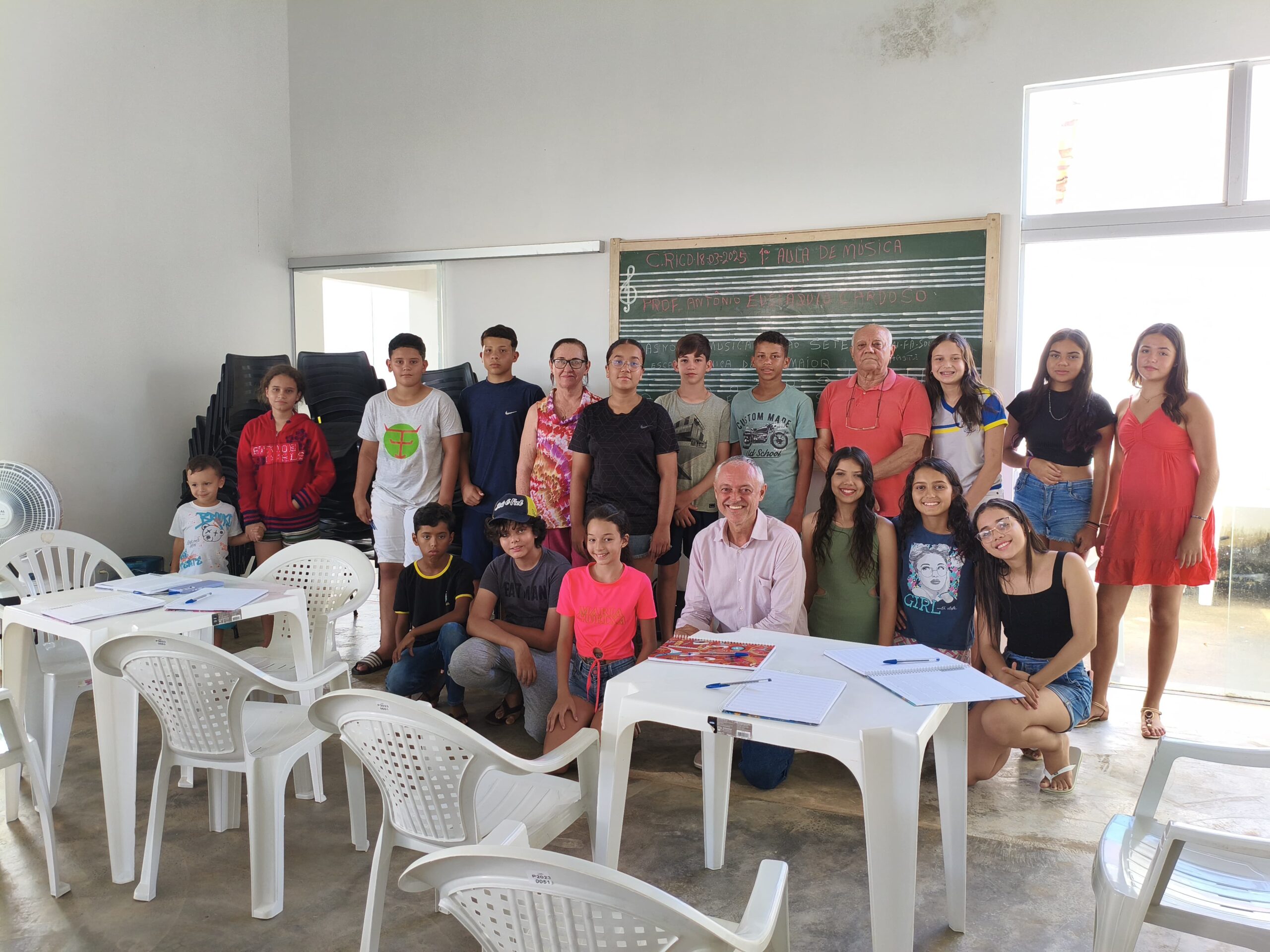 A aula de iniciação de crianças e adolescentes para participarem da Banda, foi realizada na Casa da Cultura, com a presença da secretária de Cultura Nathália Abadia e do maestro Antônio Eustáquio Cardoso.