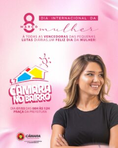 ITUIUTABA – Nesta sexta-feira, 07/03, a edição do Câmara no Bairro será realizada na Praça Cônego Ângelo, e o tema não poderia ser outro, “Homenagem às Mulheres” pelo seu dia, que é comemorado no dia 8 de março.